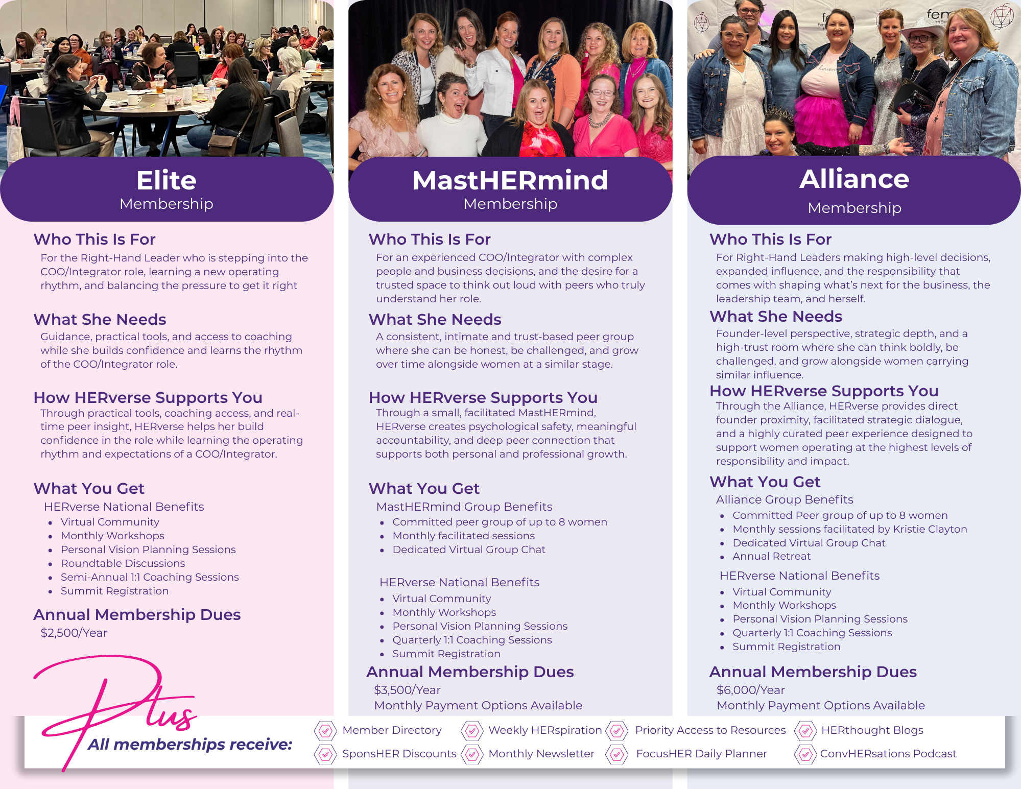 At HERverse, you’re not just joining a community, you’re stepping into a network of powerhouse women who are just as passionate about connecting, energizing, and empowering one another. Together, we live out these core values every day: